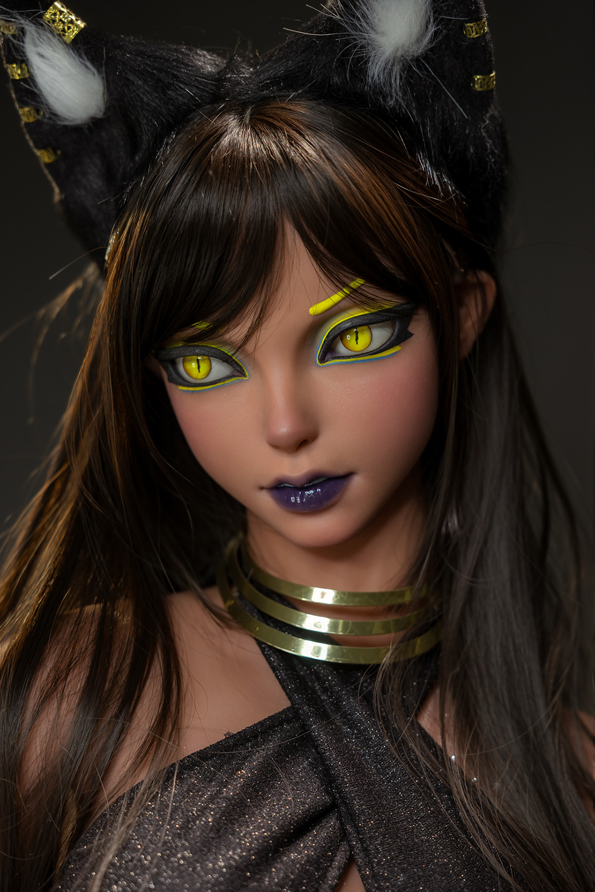 • Экзотические кошачьи уши и зеленые глаза в стиле богини Бастет