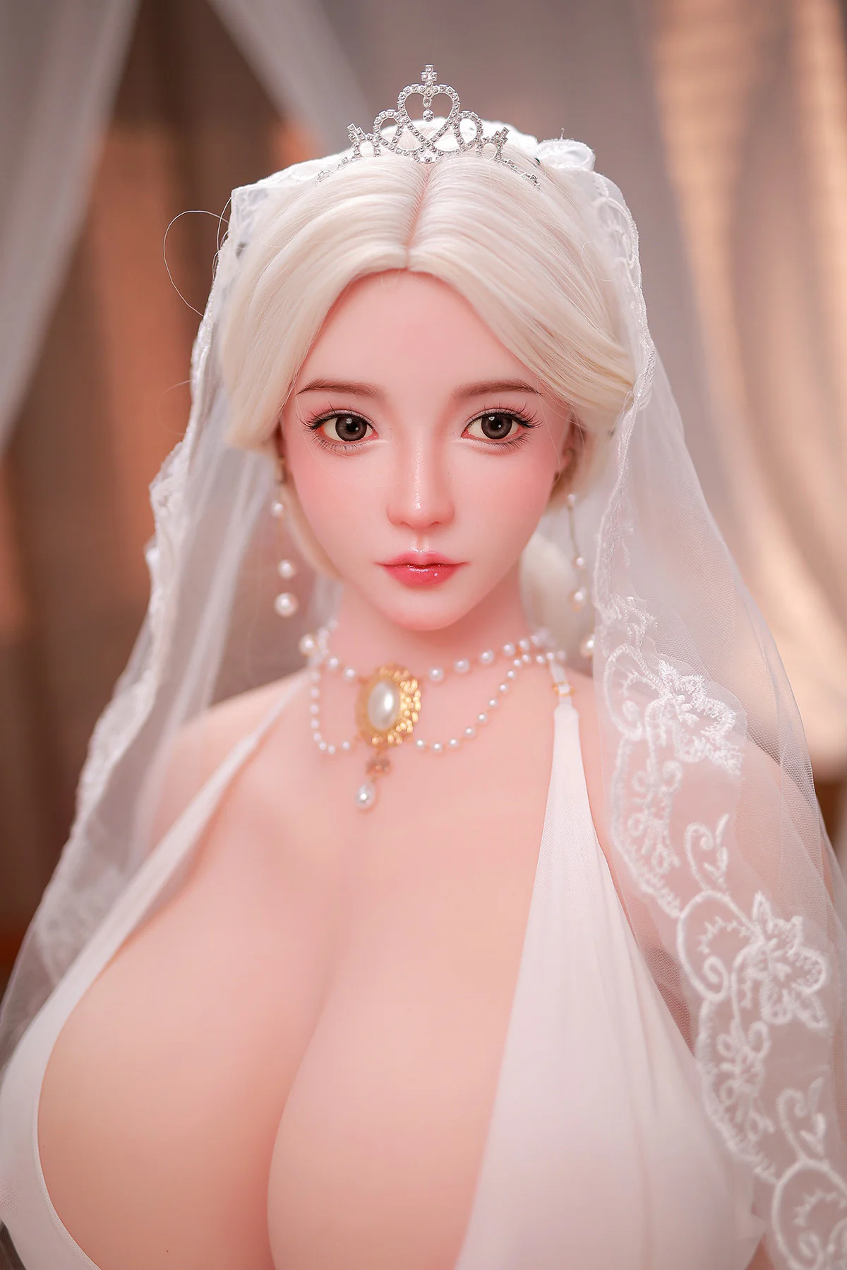 В самом сердце шумного города, среди шепота желания и секретов страсти, существует удивительное творение: гиперреалистичная секс-кукла с огромной грудью Missse. Ее рост составляет 164 см, это видение чувственности, созданное из лучших материалов TPE и силикагеля. Ее очаровательные золотистые волосы длиной до плеч ниспадают водопадом, обрамляя лицо, говорящее о невысказанных тайнах. Одетая в белый кружевной боди, она является воплощением элегантности и очарования. На ее голове покоится бриллиантовая корона, подчеркивающая ее царственную красоту. Нежная белая вуаль мягко ниспадает на нее, намекая на необузданные желания, которые скрываются под ней. На ее шее красуется двухслойное жемчужное ожерелье, каждая жемчужина в котором символизирует страсть и близость. Ее ушки украшают жемчужные серьги, и она шепчет секреты наслаждения. В ее стройных, идеально ухоженных руках — сила, способная воплотить ваши самые сокровенные фантазии. Ее тело, такое реалистичное, — это полотно желания, каждый изгиб и контур которого тщательно проработан, чтобы разжечь пламя страсти. С каждым прикосновением вы будете чувствовать себя так, словно находитесь в присутствии настоящей возлюбленной, ее кожа мягкая и податливая, ее объятия нежные и манящие. Заглянув в ее пленительные глаза, затерянные в глубинах ее души, вы перенесетесь в царство интимной связи и невысказанных желаний. Ее присутствие, такое реалистичное, пробудит в вас дремлющее пламя, разжигая страсть, которая не знает границ. Погрузитесь в очарование гиперреалистичной Миссс Huge