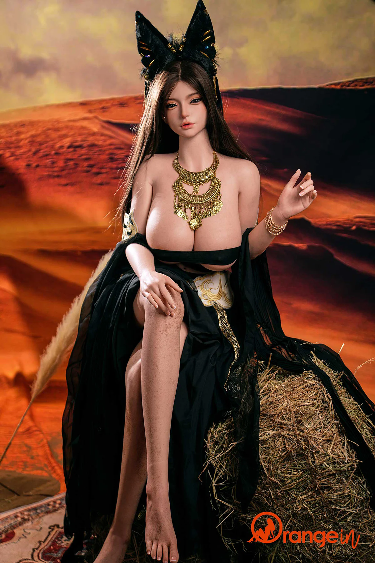 Над дюнами дрожит марево, там, где покоится эта силиконовая секс-кукла, Orangein фэнтези кукла в черном шелке и золоте. Она — 162см кукла в пустыне, ее каштановые волосы разливаются по песку, как масло. Эта кукла с кошачьими ушками открыто носит свои фантазии — золотой змей, обвившийся над темными глазами, черные волосы, обрамляющие бледную кожу. Эта пышногрудая кукла лежа — фэнтези кукла для взрослых, силиконовая спутница, высеченная из зноя пустыни и запретных храмов. Коллекционная любовная кукла? Да. Но более того, эта позная реалистичная кукла — сокровище, которое ты пересек дюны, чтобы найти, ждущее с бесконечным терпением под палящим небом.